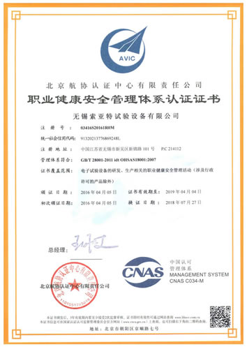 職業健康安全管理體系證書(GB/T28001-2011)